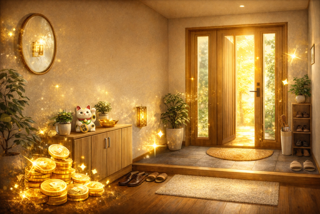 どれだけ仕事を頑張っても、どれだけ節約しても、玄関の運気が乱れていると「なぜかお金が残らない」「臨時出費が続く」といった状態になりやすいのです。