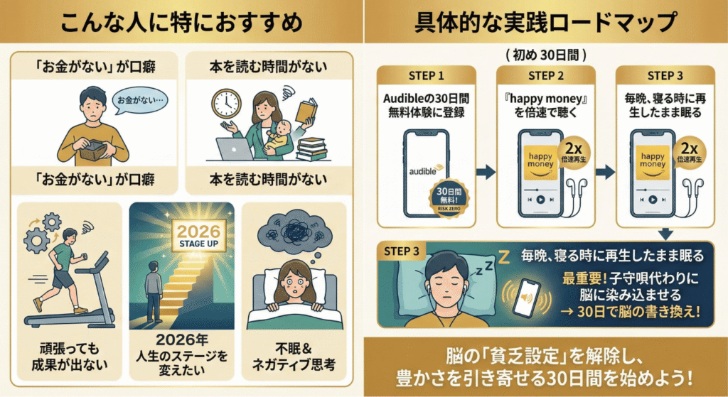 3. 毎晩、寝る時に「再生」したまま眠りにつく これが最も重要です。子守唄代わりに、豊かさの言葉を脳に染み込ませてください。これを30日間続けると、脳の神経回路(シナプス)が組み変わり、思考の癖が変わっていることに気づくはずです。