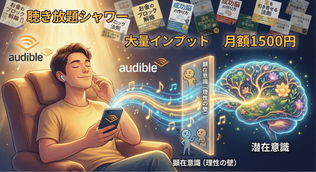 視覚情報(読書など)は、理性的な脳(顕在意識)が「そんなの上手くいかないよ」と反発しやすいのですが、聴覚情報、特にリラックスしている時や寝入りばなの音声は、理性の壁をすり抜けて潜在意識にダイレクトに届きます。